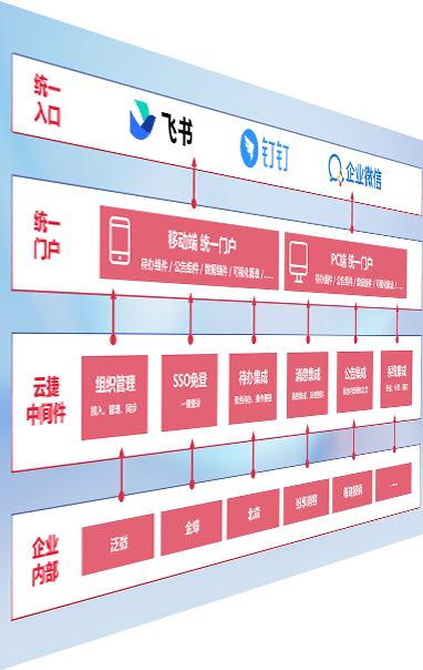 对协作平台提供支持服务,,支持企业应用与协作平台对接,,,包含组织同步、、、、消息集成、、、待办集成等。。支持目前主流的协作平台:钉钉、、、企微和飞书。。。。